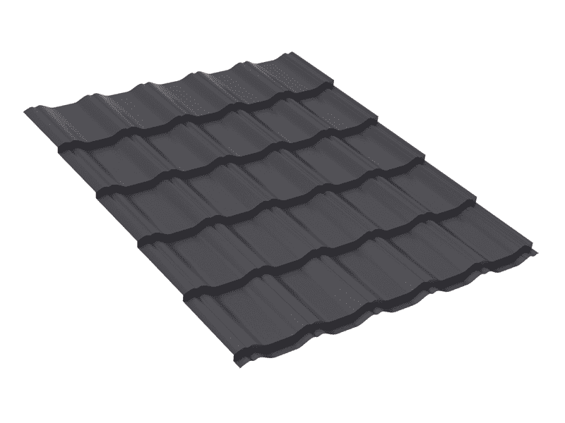 Продукт изготавливается из оцинкованной стали высокого качества. Слой цинка защищает материал от коррозии, а финишное покрытие - от любых воздействий окружающей среды. Главной отличительной особенностью является надежная защита от протеканий, что обеспечивается рядом технологических решений: увеличенной до 7 мм области нахлеста, конденсационной канавкой на гребне и меньшим радиусом закругления у накрывающей части металлочерепицы.