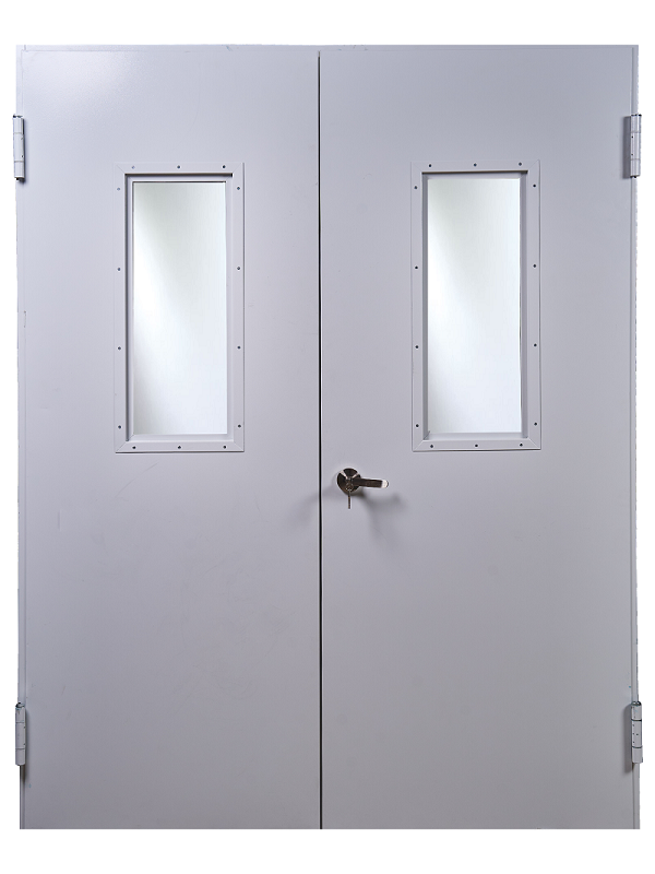 Двери стальные глухие, частично остеклённые. Могут быть однопольными, двупольными, распашными, с полимерным покрытием, без порога, с порогом, с опускающимся порогом, в том числе оборудованные электромагнитным фиксатором и электромагнитным замком. Перекладка каменной ваты внутри полотна, исключает образование щелей между плитами утеплителя. Оснащены оцинкованными петлями самозакрывания с регулируемым натяжением пружины, а также противосъёмными штырями. Фурнитура произведена из нержавеющей стали, цилиндр латунный, термоуплотнительный контур собственного производства, защита замка гипсовая.