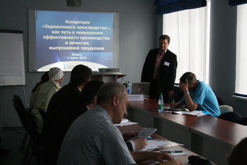 О «бережливом производстве» представителям таких компаний как: «Вланик-строй», «БелЕвроТрубПласт», «Белизолит» и «Кохановский трубный завод» рассказывал управляющий партнер консультационной компании «Ключевые решения» Сергей Гусаковский.