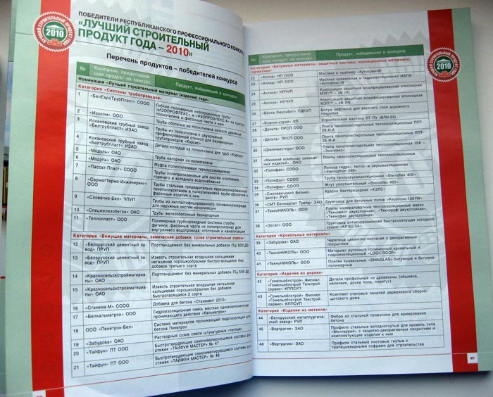 Каталог также будет представлен на выставках «СТРОЙЭКСПО-2011» (март) и «БЕЛОРУССКАЯ СТРОИТЕЛЬНАЯ НЕДЕЛЯ-2011» (апрель).