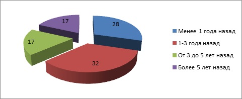 Большинство предприятий имеют собственный сайт не так давно – сайты разрабатывали 1-3 года назад (32%), либо менее года назад (28%). 17% предприятий разрабатывали сайт 3-5 лет назад, и такой же процент более 5 лет назад.
