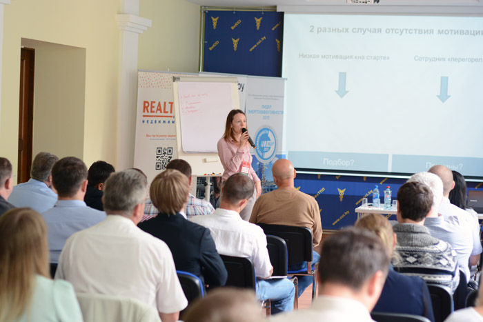 Марина Ковшер, практикующий эксперт в области продаж, рассказала, что делать с мотивацией менеджеров, когда продажи падают. Спикер сделал акцент на мотивирующих и демотивирующих факторах работы с персоналом отдела продаж. В частности, докладчик коснулся вопроса фиксированной (базовой) и переменной части заработной платы. Эксперт считает, что фиксированную часть нужно минимизировать, чтобы отдел продаж работал активнее.